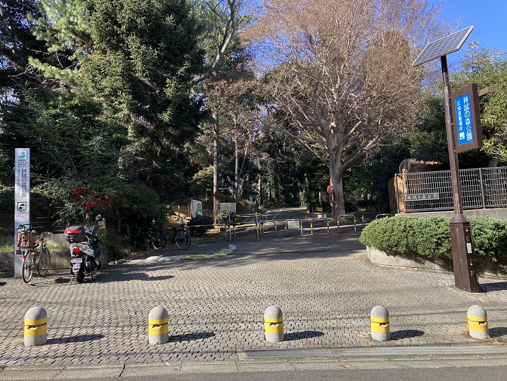林試の森公園は、目黒区と品川区にまたがる東西に700m・南北に250mの広大な都立公園です。西ケ原(現在の北区)にあった農商務省林野整理局樹木試験所(明治十一年【1878年】に設立)から、目黒川支流の羅漢寺川谷戸南側の北斜面の現在の地に植樹を移し、明治三十三年(1900年)6月に「目黒試験苗圃」が設置されました。当時の広さは約45、000坪でした。明治三十八年(1905年)に林野庁「林業試験所」、明治四十三年(1910年)に「林業試験場」と改称されました。また、林業試験場の周辺には明治から大正にかけて多くの研究所が置かれ、戦後にかけても北里研究所目黒支所・津村研究所・石炭綜合研究所・国立予防衛生研究所など、18もの研究所が置かれていました。林業試験場は昭和五十三年(1978年)につくば市に移転し(現在の独立行政法人・森林総合研究所)、跡地は都に払い下げられて公園として整備され、平成元年(1989年)6月1日に「都立林試の森公園」として開園しました。開園時の面積は12ヘクタール(約36、000坪)でした。今でも林業試験場当時の樹木がそのまま残されていて、都内でも屈指のケヤキ・クスノキ・プラタナス・ポプラ・スズカケノキなどの巨木があります。その他、カイノキ・トチュウ・シナユリノキ・チンタオトゲナシニセアカシア・ベニカエデ・ヒマラヤゴヨウ・レバノンスギまどの外国産樹木やアベマキ・ハナガガシ・ニオイドロ・シマサルスベリ・ヨコグラノキ・ナナミノキなどの珍しい木もあり、それぞれに解説のプレートが付けられています。園内で最も太い木は幹周が3.82mのケヤキで、最も高い木は高さ35.5mのポプラの木です。園内中央を南北に小さい谷地形が走っていますが、これはかつて小山台を流れていた品川用水(玉川上水の分水)を羅漢寺川に通水していた名残であり、当時を偲ばせる水車が復元されています。大木の揃った森の他、芝生広場やデイキャンプ施設、夏期に子供が入れるじゃぶじゃぶ池、西側には野球やサッカーの練習にも使用できるグラウンドも整備されています。春と秋開催の「林試の森フェスタ」ではコンサートやフリーマーケットなどが行われ、2万人以上が来場します。この他にも野外体験教室・樹木観察会・音楽会など年間を通じて数多くのイベントが実施されています。林試の森公園東門の前に緩やかな上り坂があります