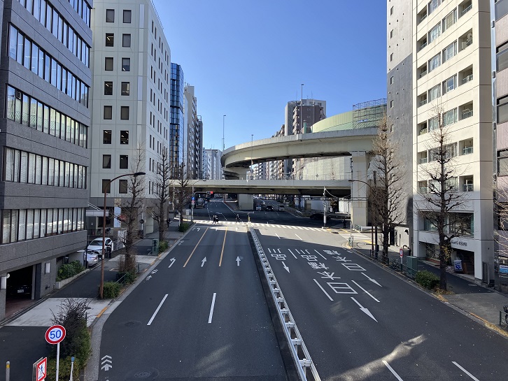 中原街道が第二京浜国道と分岐する地点から首都高目黒線の荏原ランプ付近まで、緩やかな坂が上っています。