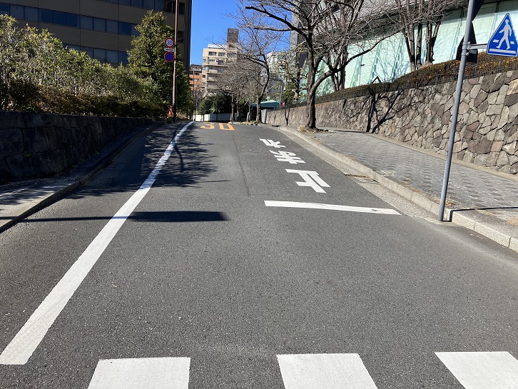 紀尾井町交差点の先から右手に上がる坂があります。坂上は新宿通りになっています。