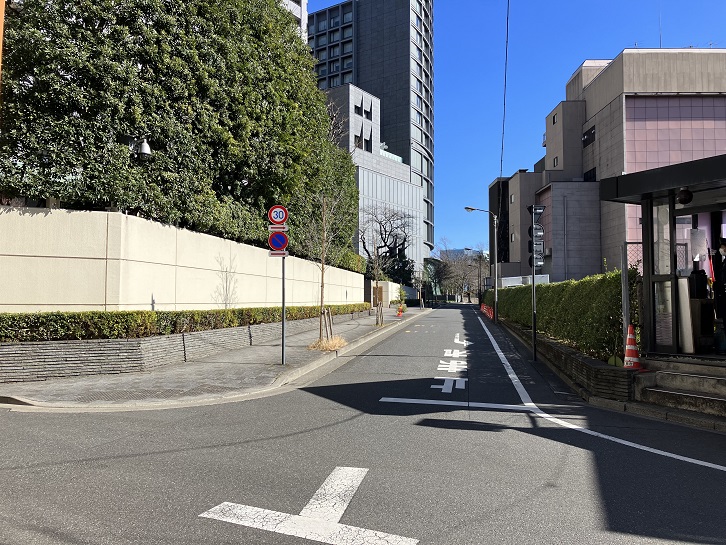 この道路にはプリンス通りという名前が付けられています。少し先には旧李王家邸があります。現在は東京ガーデンテラス紀尾井町となっているこの場所には、かって北白川宮邸がありました。北白川宮家は、明治初期に伏見宮邦家親王の第十三王子智成親王により創設された宮家です。北白川宮邸は紀州徳川家上屋敷の跡地の一部に建設され、明治十五年(1882年)に日本館が、明治十七年(1884年)にジョサイア・コンドルが設計した洋館が完成しました。洋館は当初3階建ての塔屋もありましたが、明治二十七年(1894年)の明治東京地震で被害を受けて撤去されました。北白川宮家は明治四十五年(1912年)に高輪南町の新邸へ移転し、旧邸の建物は宮内省が買い上げました。その後建物は関東大震災で若干の被害を受けたのち、大正十三年(1924年)に李王家に下賜されました。李王家は李氏朝鮮の歴代国王を出した家系で、明治四十三年(1910年)の日韓併合後は日本の皇族に準ずる待遇となっていました。大正十五年(1926年)から宮内省内匠寮の設計でイギリス16世紀のチューダーゴシック様式の新しい李王邸の洋館の建設が旧北白川宮邸跡地で始まり、昭和五年(1930年)に完成し、終戦まで李王邸として使用されました。終戦後は参議院議長公邸などに利用された後、昭和二十七年(1952年)に西武グループの堤康次郎が買収し、昭和三十年(1955年)に旧李王邸の洋館を利用して赤坂プリンスホテル(現在はザ・プリンスギャラリー 東京紀尾井町)を開業しました。赤坂プリンスホテルが営業を終了した後、旧李王家邸の建物は南東側に44メートル曳家されて位置を変えたうえで、結婚式場の赤坂プリンス クラシックハウスとして利用されています。