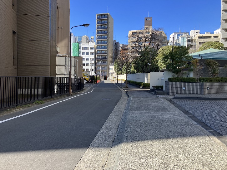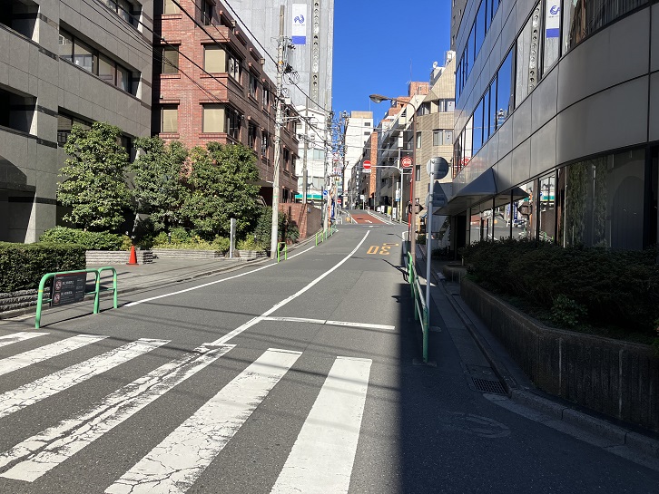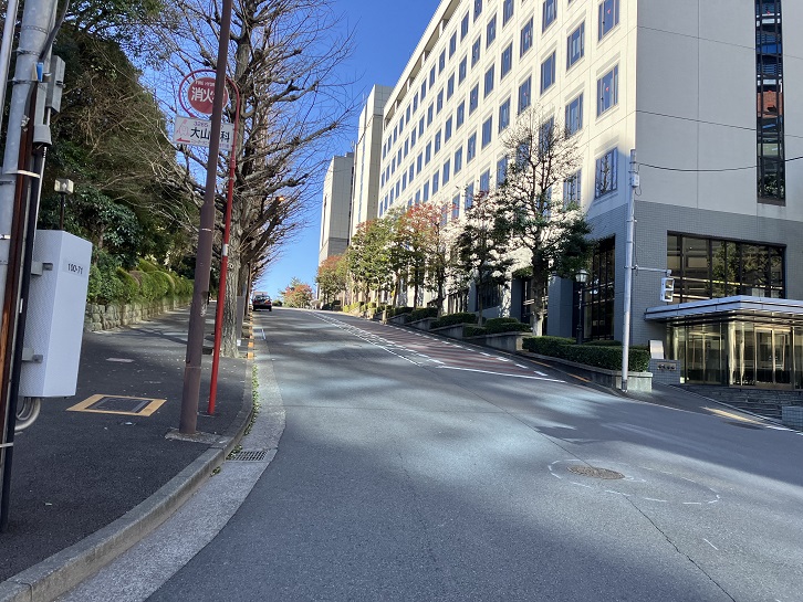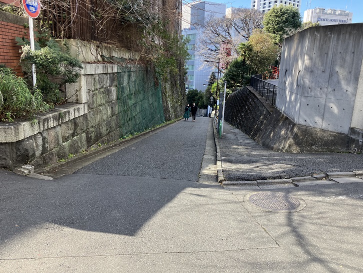いちょう坂の坂下付近から長い坂が下っています。