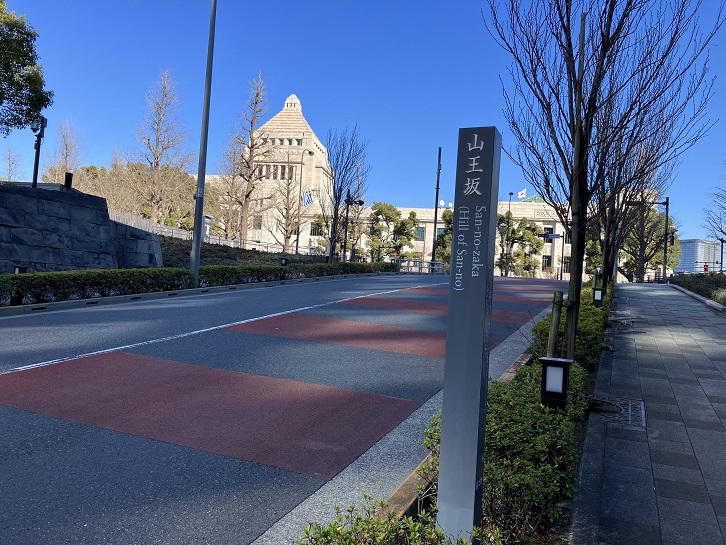 山王日枝神社から国会議事堂方向に進みますと、衆議院新議員会館の間に長い坂が上っています。