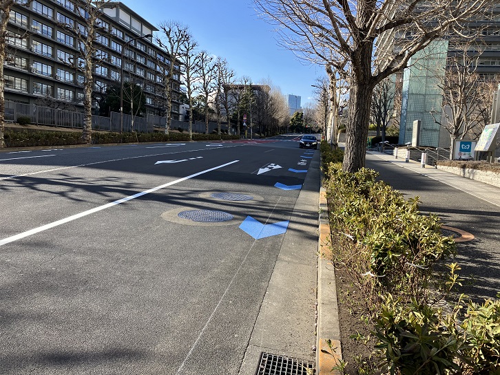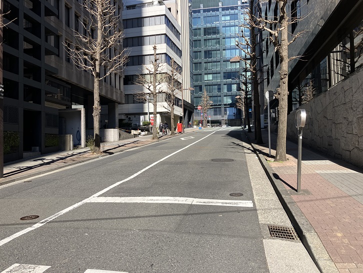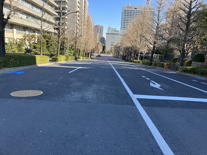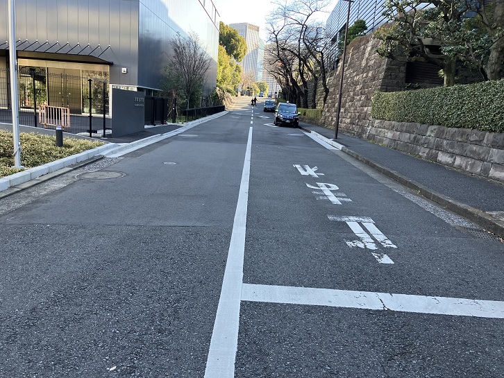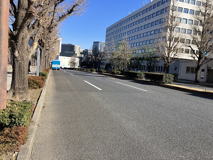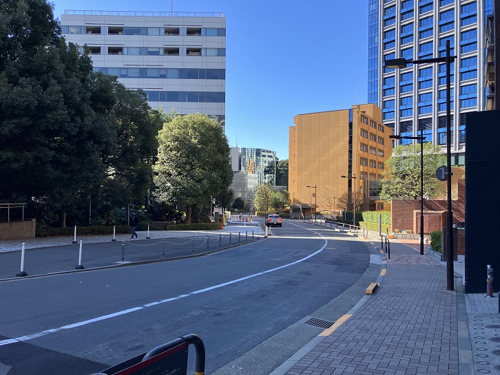 外務省と国交省・総務省との間に道幅の広い坂が上がっています。