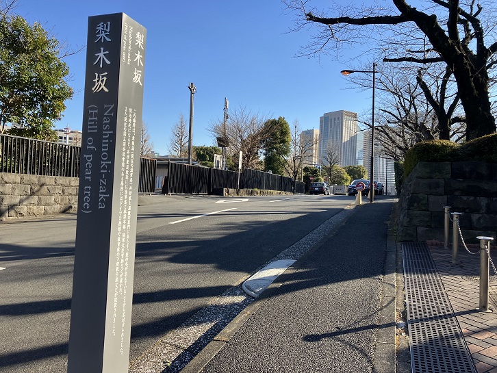 この場所は、彦根藩(現在の滋賀県)井伊家上屋敷の裏門にあたり、梨の木が生えていたことから名付けられました。明治時代になると、井伊家屋敷跡には陸軍省と参謀本部、陸軍大臣官邸などが置かれ、また現在の国立国会図書館のある場所にはドイツ公使館や教育家の下田歌子邸などが建設されました。
