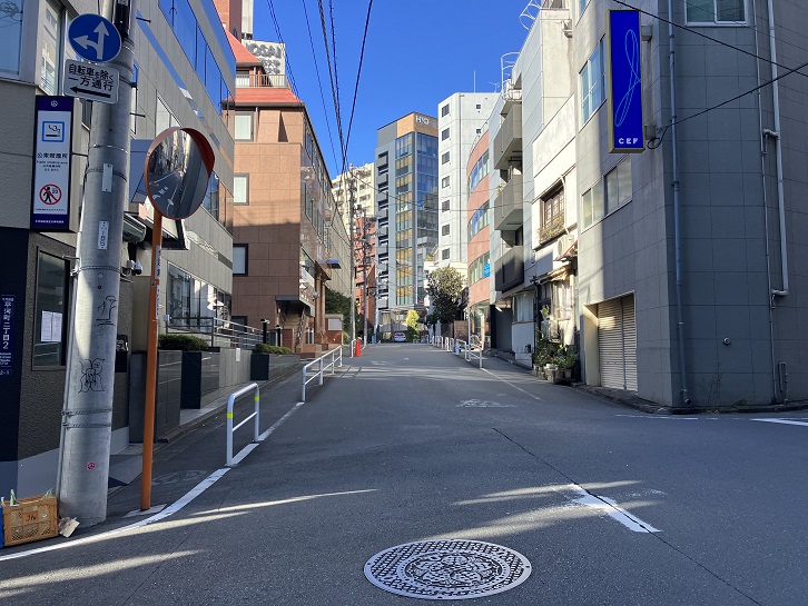 中坂の坂上を左折した先に、右手に上がる坂があります。