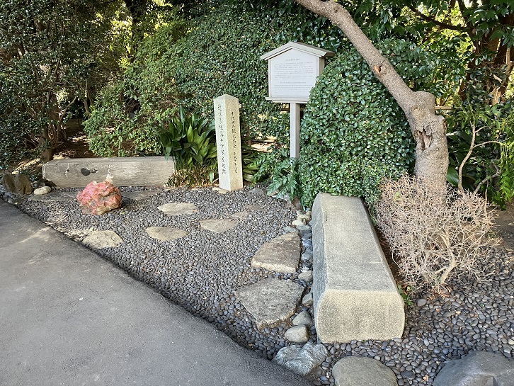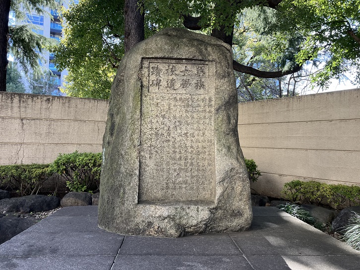 松平家の屋敷は明治になって公用地となり、華族女学校が設立されました。参議院議長公邸の裏門の横の植え込みの中に、文面は判読できませんが「華族女學校遺蹟碑」の石碑が置かれています。
