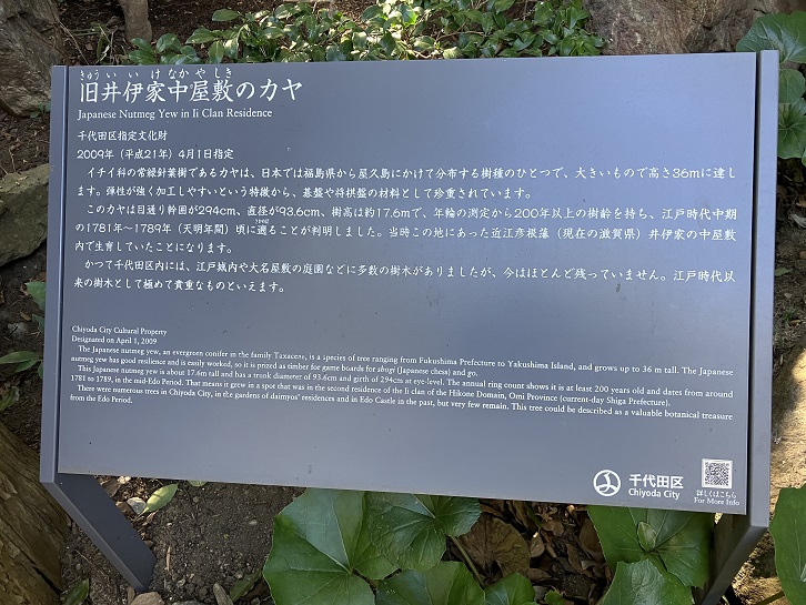 千代田区指定文化財 旧井伊家中屋敷のカヤ