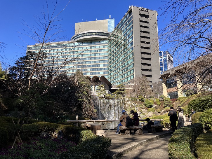 遊歩道の脇には、さりげなく高級レストランが散在しています。なだ万本店もありますね。なだ万は天保元年(1830年)に創業し、日本料理「なだ万」の本店・山茶花荘は江戸城外堀に囲まれた約一万坪の広大なホテルニューオータニの日本庭園の中にあります。数寄屋造りの瀟洒な建物は日本建築の第一人者だった故・村野藤吾の設計による傑作といわれ、源氏物語に因んだ4つのお座敷があります。私には縁がないですけど。