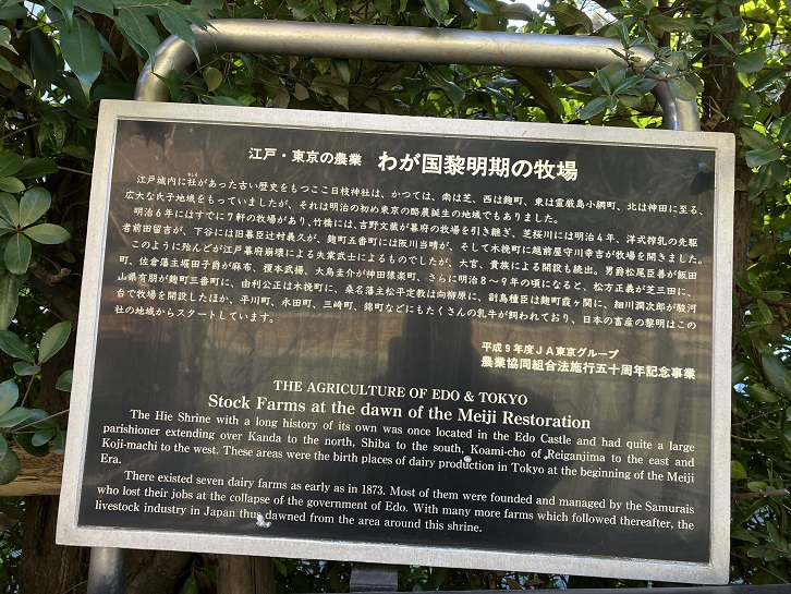 山王日枝神社一帯には明治の初め頃に牧場があったそうです。
