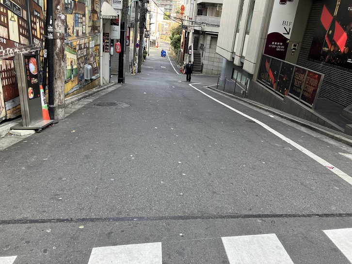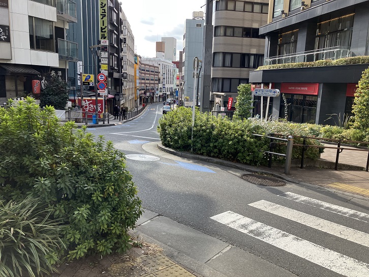 アマンドと六本木マイアミビルの間に緩やかな坂が下っています。