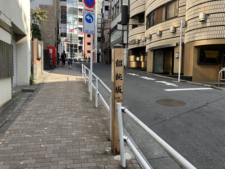 饂飩坂は長さが約60mほどの坂で、坂名はかって坂の脇にうどん屋があったことに因みます。坂上と坂下付近に案内柱が立っています。