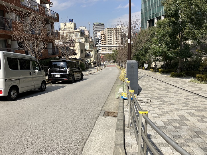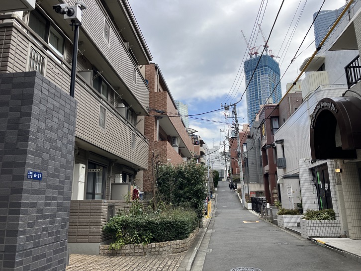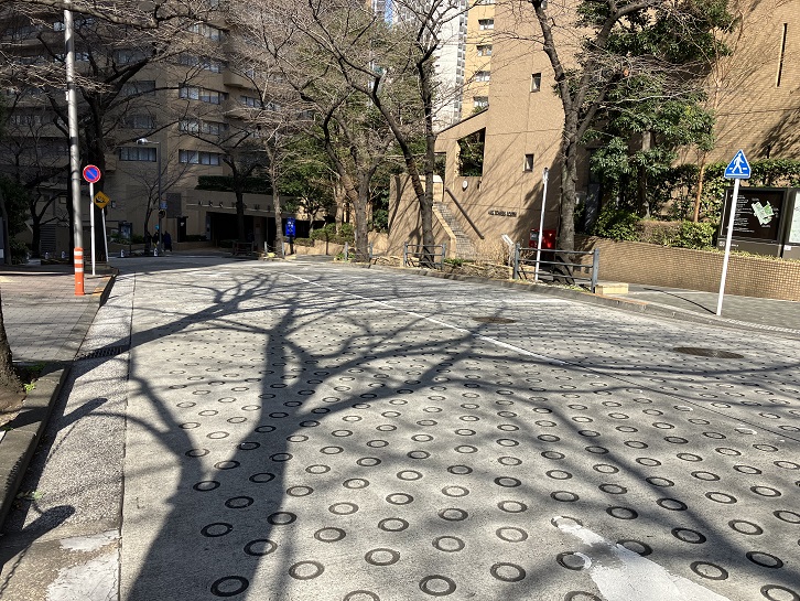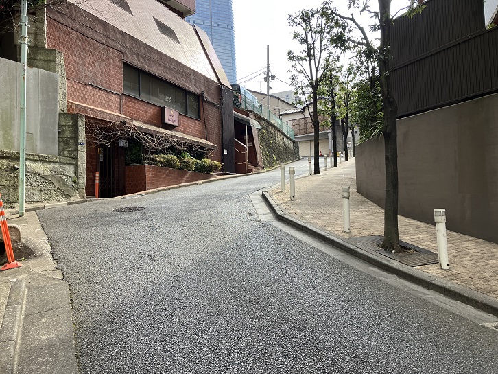 六本木四丁目交差点から右手に緩やかな坂が上がっています。