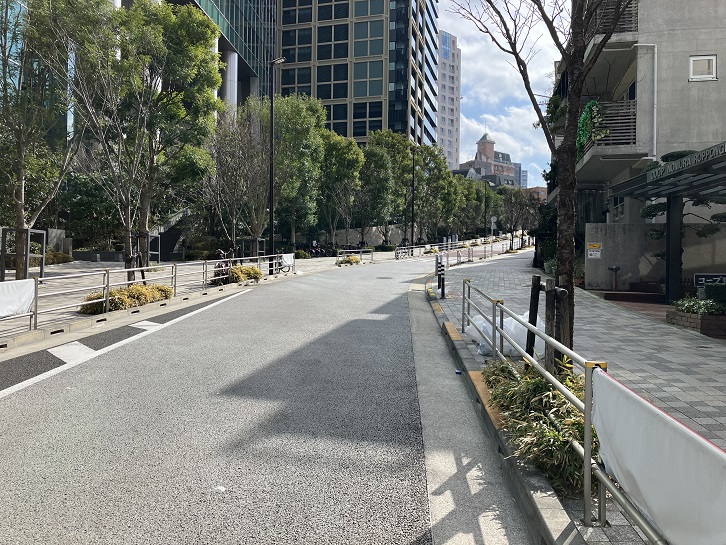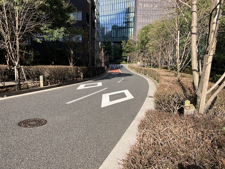 泉通りのスペイン大使館裏手からアークヒルズの南西側に沿って六本木通りまで、坂が僅かに左右にカーブしながら下りています。