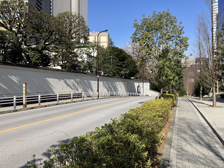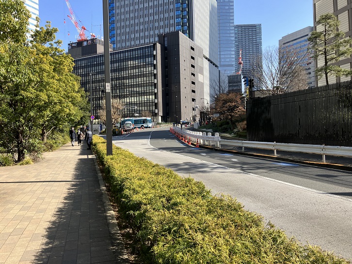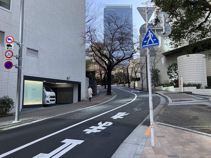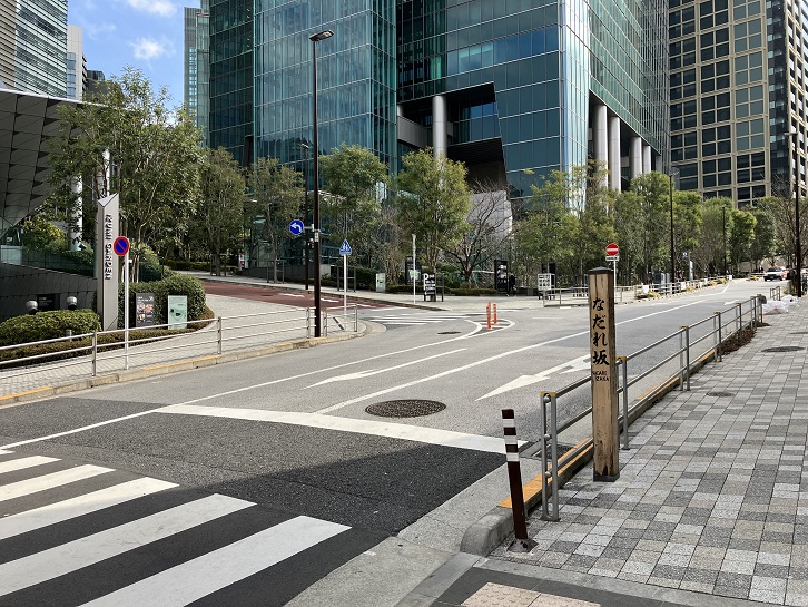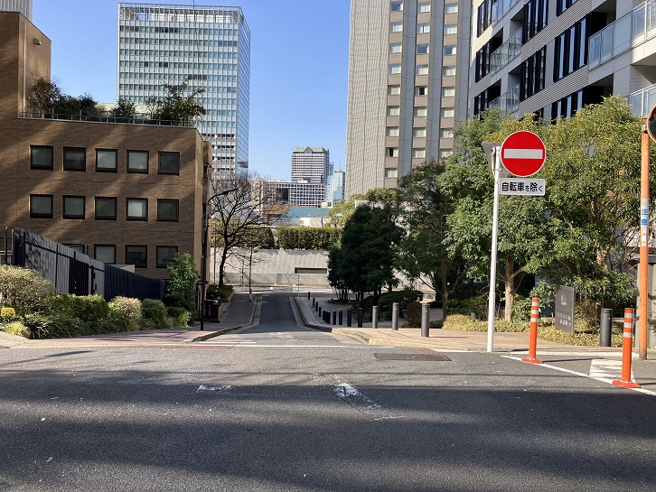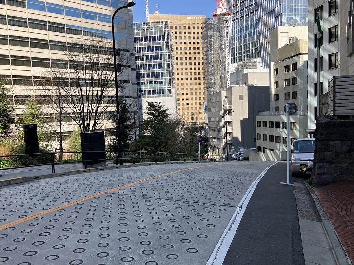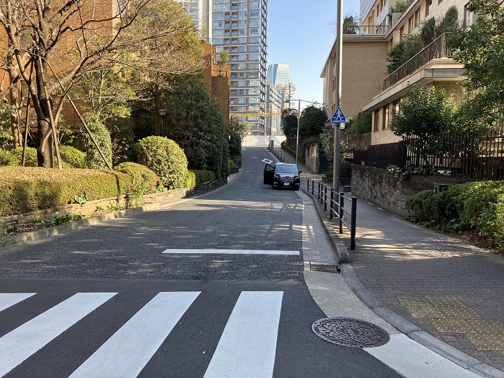 アメリカ大使館とホテルオークラの間に広い坂道が下っています。