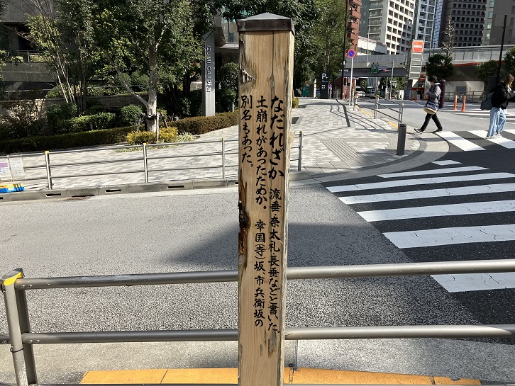 なだれざか 流垂・奈太礼・長垂などと書いた。土崩れがあったためか。幸国(寺)坂、市兵衛坂の別名もあった。