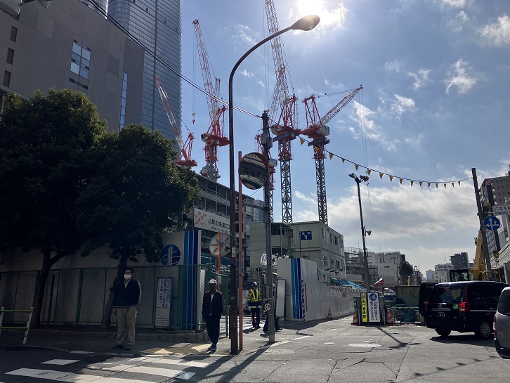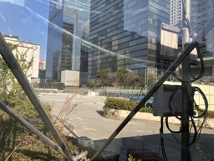 三谷坂を上がるとホテルオークラの別館前に出ます。あの特徴ある優雅なエントランスが久しぶりに見れるかと思ったのですが、別館は完全に取り壊されて更地となり、敷地は工事用の塀で囲まれています。