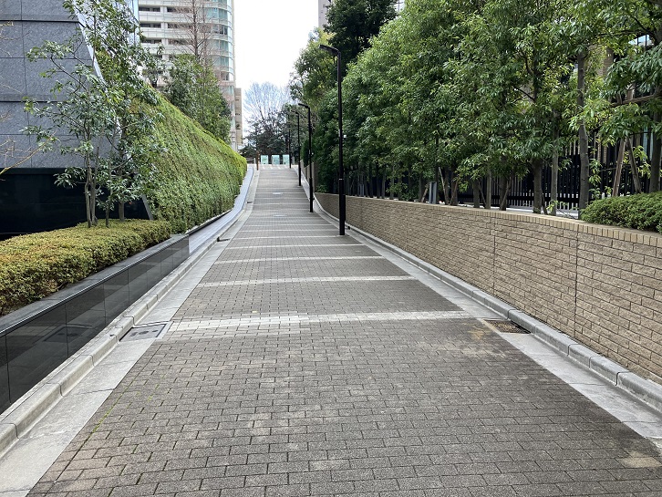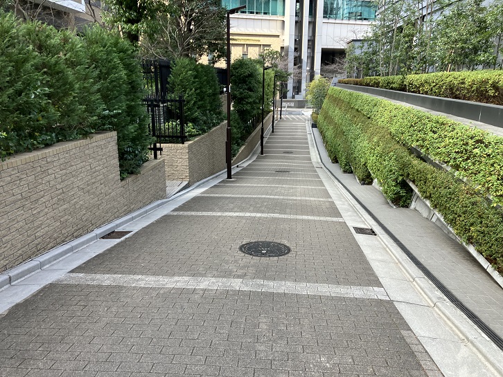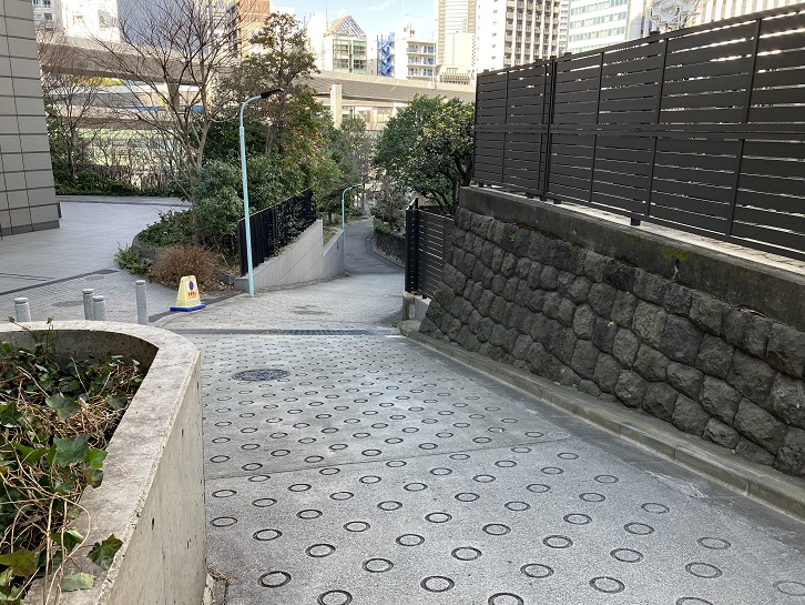 アークヒルズのサントリーホール裏から東方向に坂が上っています。