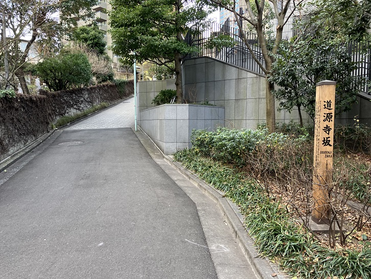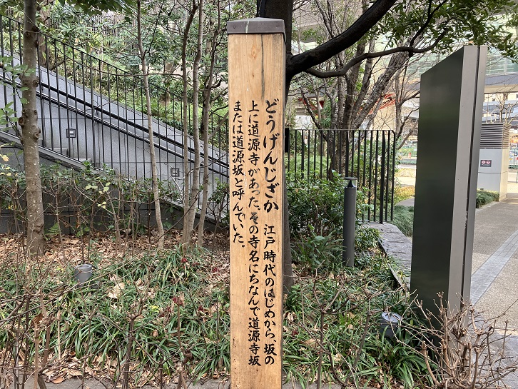 どうげんじざか 江戸時代のはじめから、坂の上に道源寺があった。その寺名にちなんで道源寺坂または道源坂と呼んでいた。