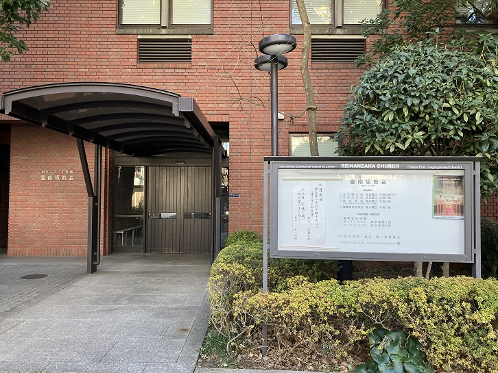 アメリカ大使館と道路を挟んだ南側に、一見すると普通のビルのように見えますが霊南坂教会があります。現在の新会堂は昭和六十年(1985年)にアークヒルズ開発に伴って此の地に移転して建設されましたが、それ以前の昭和五十五年(1980年)11月19日には移転前の教会で山口百恵さんと三浦友和さんの結婚式が挙げられました。