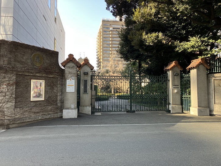 三谷坂上を右折しますと、右手にスペイン大使館があります。