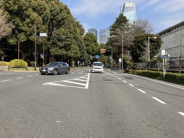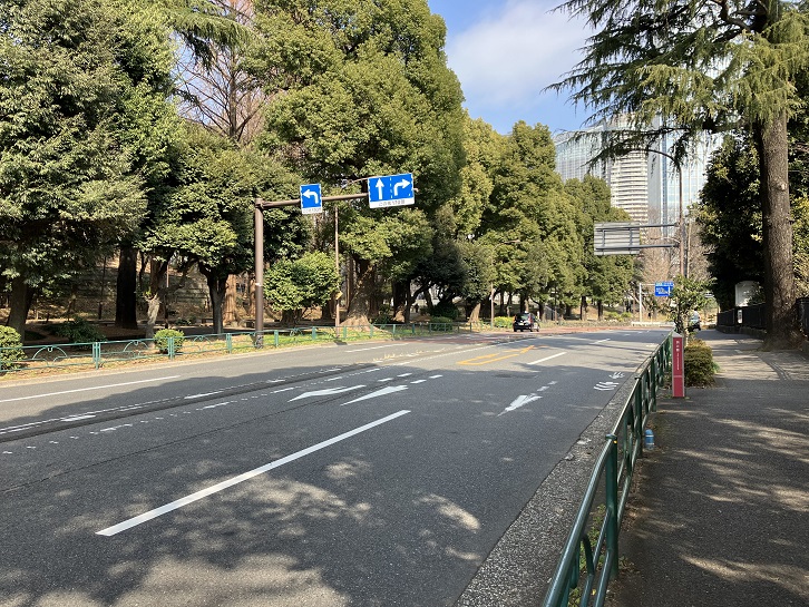 東京プリンスホテルの北側に面した芝公園三丁目交差点付近から、プリンスホテルの西側に位置する東京タワー前交差点付近までの愛宕下通りは緩やかな上り坂になっています。