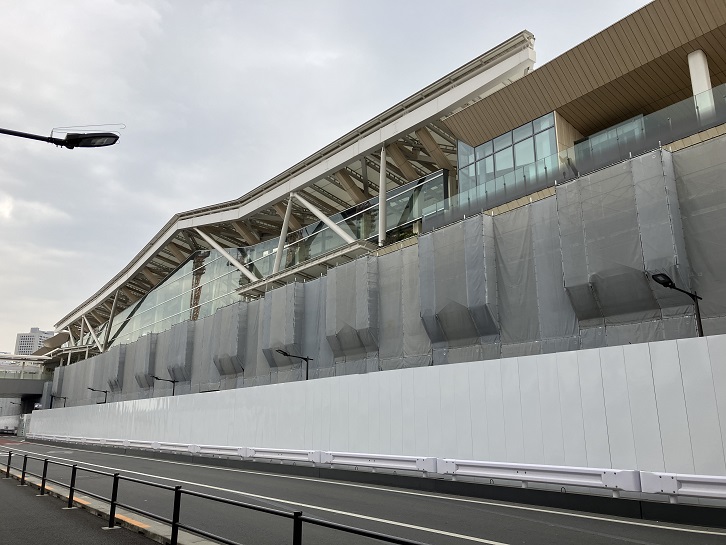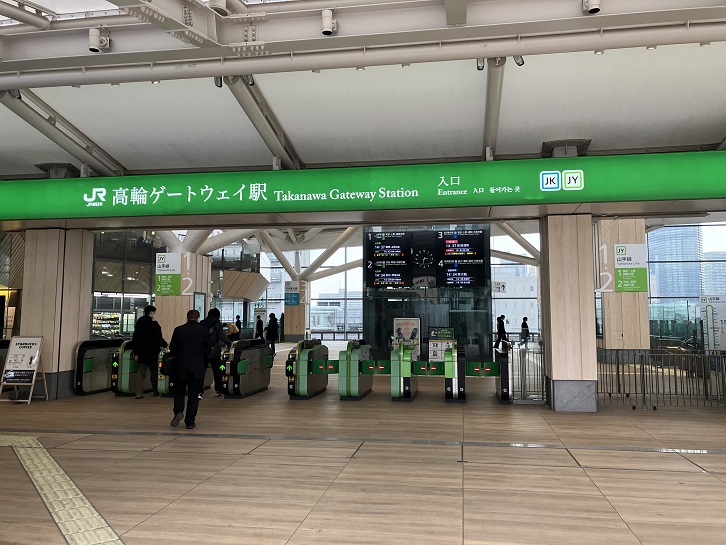 ゴール地点の高輪ゲートウェイ駅に着きました。思いっきり未来的な外観の駅舎ですね。