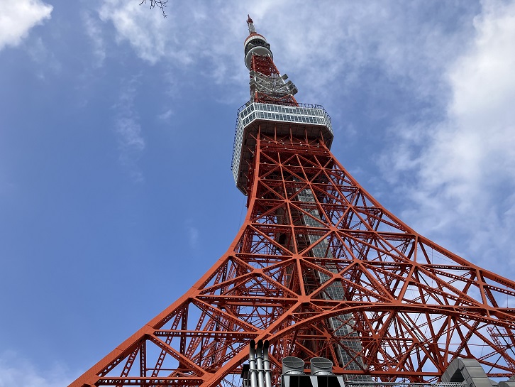 東京タワーはいつ見ても美しいですね。真下からの眺めは迫力満点です。