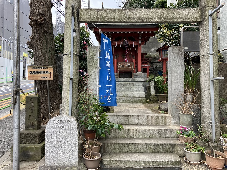 聖坂の途中に亀塚神社が鎮座しています。亀塚稲荷神社は亀の形をした石を御神体としていて、太田道灌が此の地に物見台を造った際に建立したといわれています。