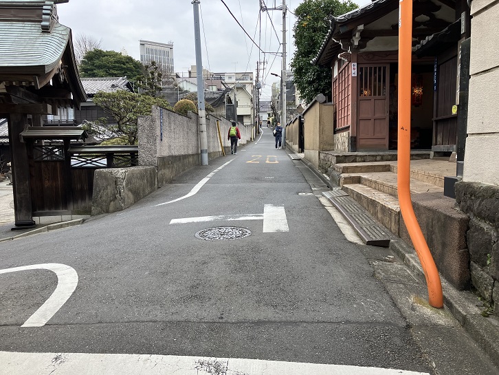 泉岳寺の中門前を左折し、路地を進みます。