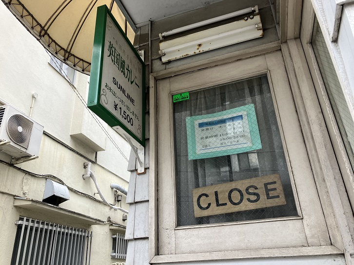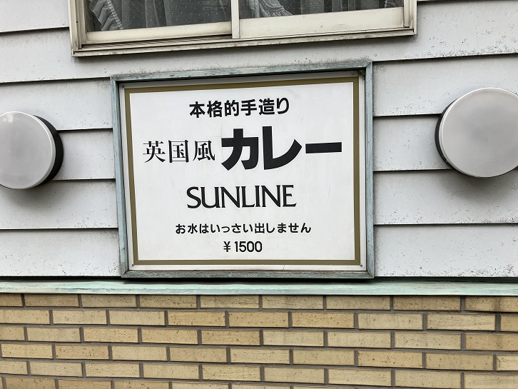 坂上付近の西側に、「お水はいっさい出しません」で有名な英国風カレーのお店のSUNLINEがあります。水を出さないのは、医食同源のような考え方で、水を飲むとスパイスの効能が薄れるということのようです。前から気になっていたのですけど、今だに食べたことはありません。