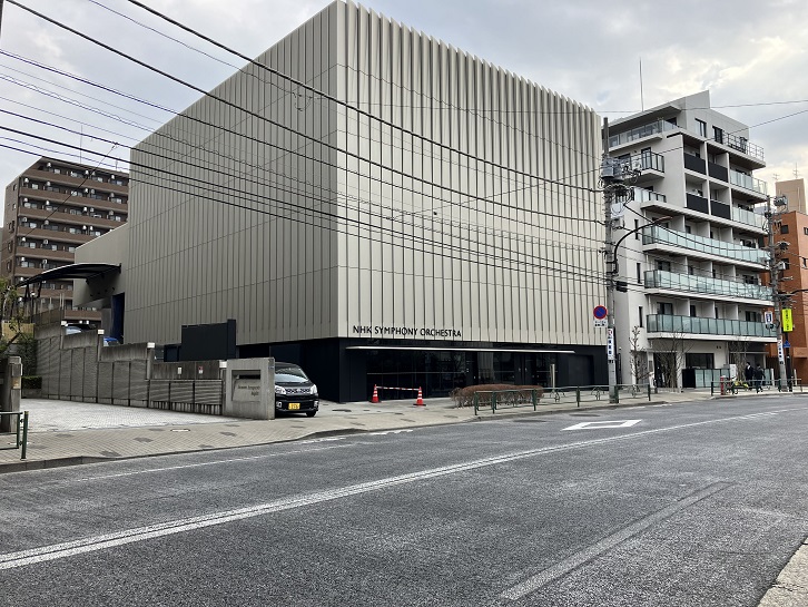泉岳寺の手前に、NHK交響楽団の練習拠点になっている窓のない直方体の建物があります。定期公演は渋谷のNHKホールや赤坂のサントリーホールで行いますが、練習は高輪のこの演奏所で行ないます。演奏所の中には、ベートーヴェンの第九交響曲の練習の際に合唱団まで入ることが出来る広い練習室や、2・3名で練習できる分奏室が6部屋あります。さらに、楽器や衣装の倉庫はもちろん、楽団員がくつろげるラウンジも設置されています。1961年に建てられた建物は2014年に約1年かけて大改装を行い、建物全体の耐震化と空調システムの改善、それに練習室の音響の向上を図り、練習に集中できる環境を整えました。2階のライブラリーには、歴代の楽譜や音源が保管されています。オーケストラでは、同じ曲でも指揮者が違うと全く違う演奏になります。その違いは、指揮者の指示が書き込まれた楽譜に表れます。そこで、書き込まれた楽譜はライブラリに保管しておき、のちに同じ曲を振る指揮者や楽員が参考にするそうです。公演ごとに増えていくこれらの資料は、NHK交響楽団が積み上げてきた歴史であり、後世に繋いでいく資産になることでしょう。