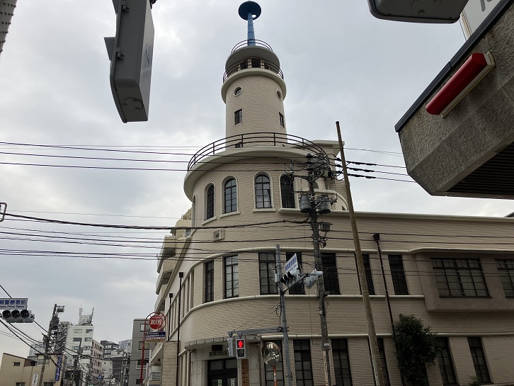 レトロな外観の高輪消防署二本榎出張所前の交差点を左折します。