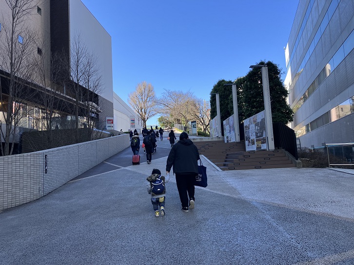 第一京浜(国道15号線)を進んで品川プリンスホテルに向かいます。解体工事が進むパシフィックホテルを右手に眺めながら、歩道橋を渡って品川プリンスホテルのモール街に入ります。品川プリンスホテルは単に宿泊するという機能だけでなく、ホテルとエンターテインメントの融合をテーマにして、約3500室の客室と水族館やアトラクションを備えた様々な施設を備えています。今日は建国記念日の祝日で、大勢の家族連れが訪れて賑わっています。敷地の外側に沿って通る道路と並行するように、ホテルのノースタワー入口の前からマクセルアクアパーク品川という水族館の前を通って高輪テニスセンター前まで坂が上っています。