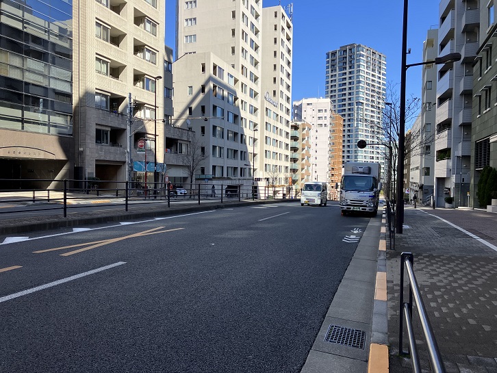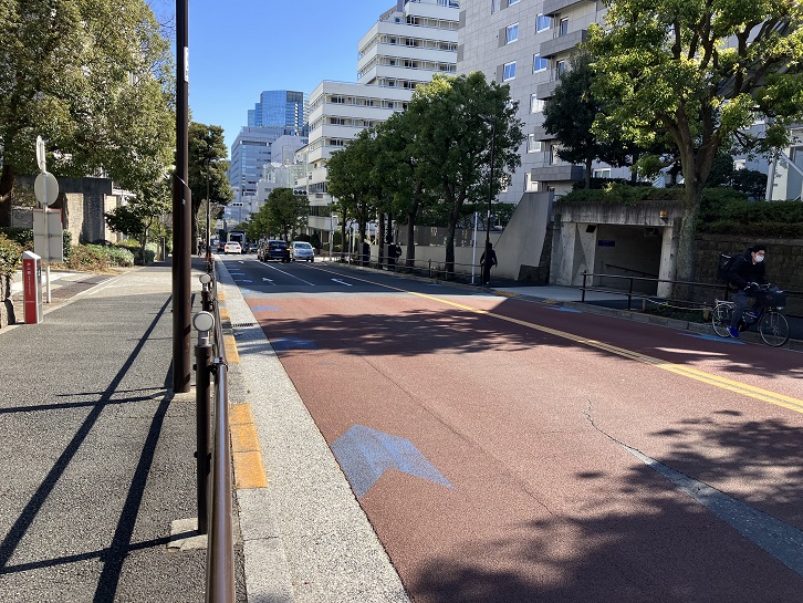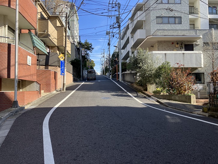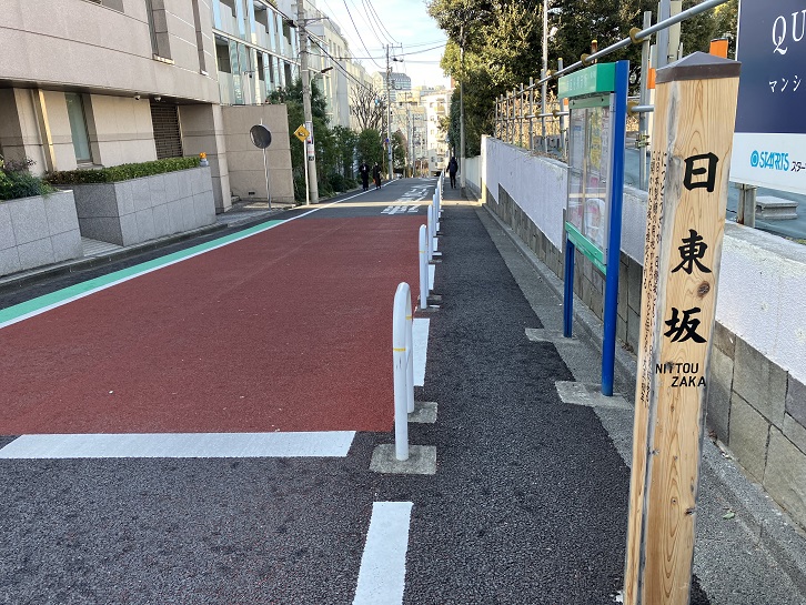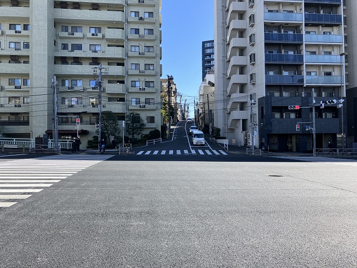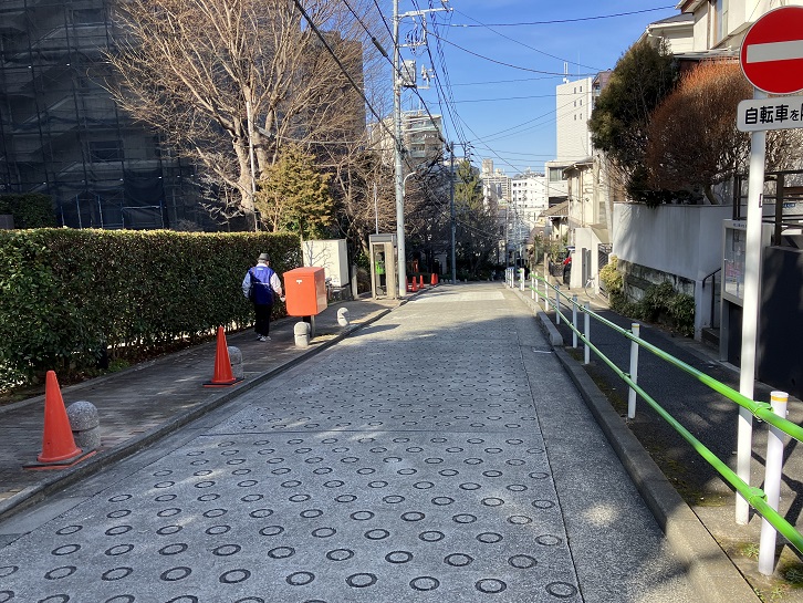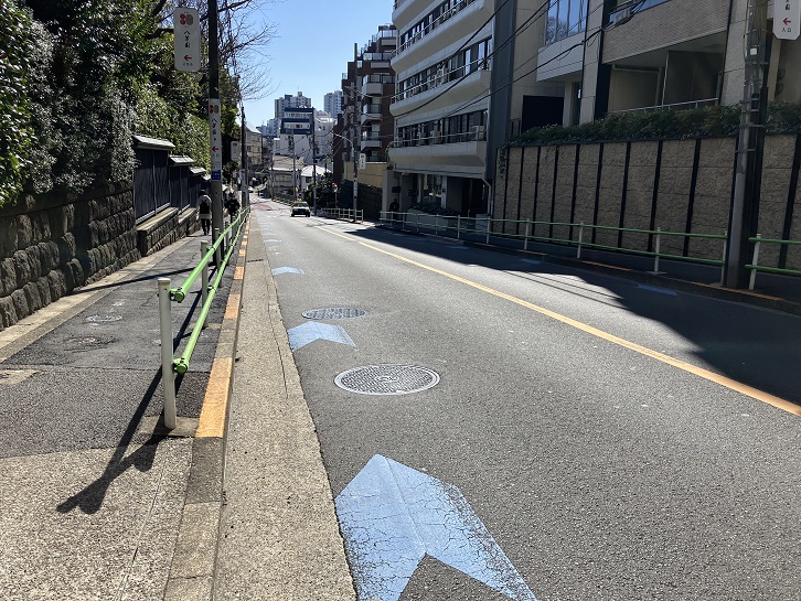 桜田通りの白金高輪駅付近から目黒通りとの分岐点となる清正公前交差点付近まで坂が上っています。