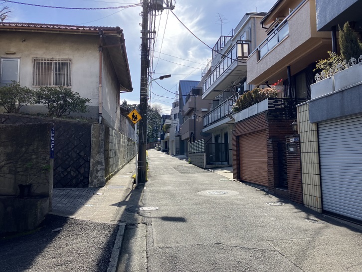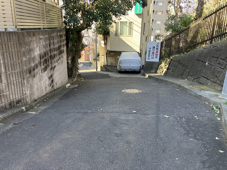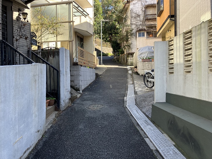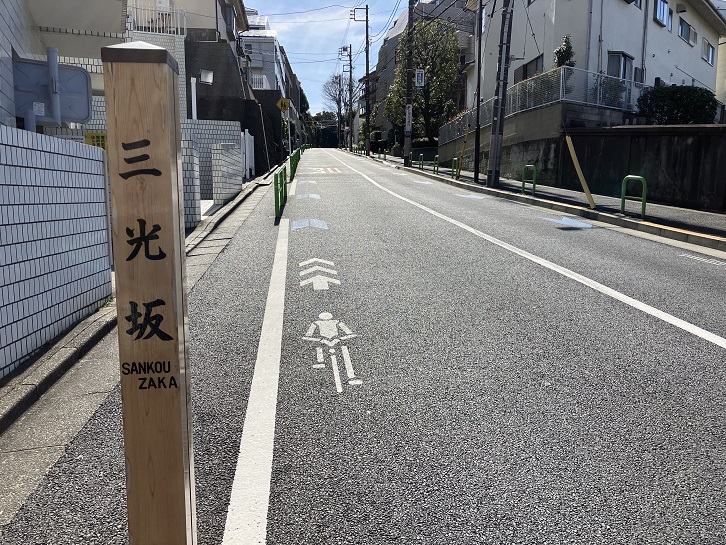 白金北里通りの三光坂下交差点から左手に坂が上がっています。