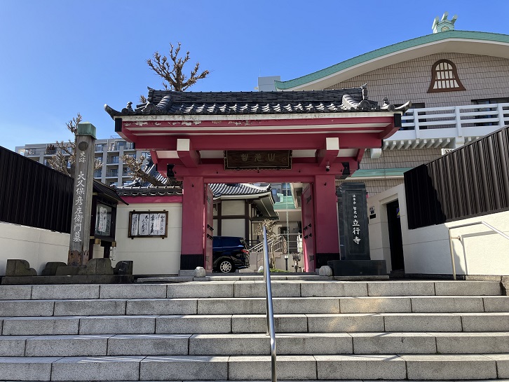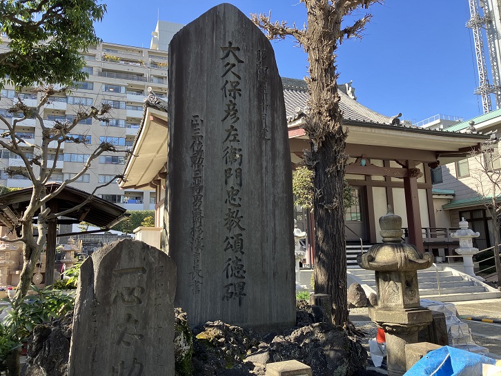 白金高輪駅のはす向かいに桜田通りから鋭角に分岐する道路があります。その先に朱色の山門が鮮やかな立行寺があります。山門の前に「大久保彦左衛門墓」の柱が立っています。境内には大きな石碑が建っていて、隣には一心太助の石塔も置いてあります。戦国時代から江戸時代前期の武将で旗本の大久保忠教は、大久保彦左衛門の通称で知られています。立行寺は大久保忠教によって建立されたために「大久保寺」とも呼ばれています。講談や講釈で知られるようになった「大久保彦左衛門と一心太助の物語」は、鶴屋南北の弟子である河竹黙阿弥が書いた歌舞伎芝居を脚色したものです。一心太助は百姓でしたが、あるとき領主の大久保彦左衛門に意見したのが気に入られ、大久保家で奉公することとなりました。大久保彦左衛門の皿を誤って1枚割ってしまった腰元お仲が手討ちで殺されそうになるのを一心太助が知り、彦左衛門の前で残りの皿7枚を割りました。彦左衛門はお仲と一心太助を許し、一心太助はお仲と結婚して武家奉公を辞め、お仲の実家の魚屋で働くこととなりました。その後も大久保彦左衛門に意見し、協力することとなります。番町皿屋敷の結末とはえらい違いですね。