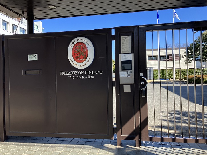 坂上の右手にはフィンランド大使館があります。港区内には約60もの大使館がありますが、フィンランド大使館は港区の中心部の南麻布に位置しています。大使館の建物は1983年に建てられ、数百年を経る堂々とした椎の古木が大使館の中庭に重厚な雰囲気を添えています。
