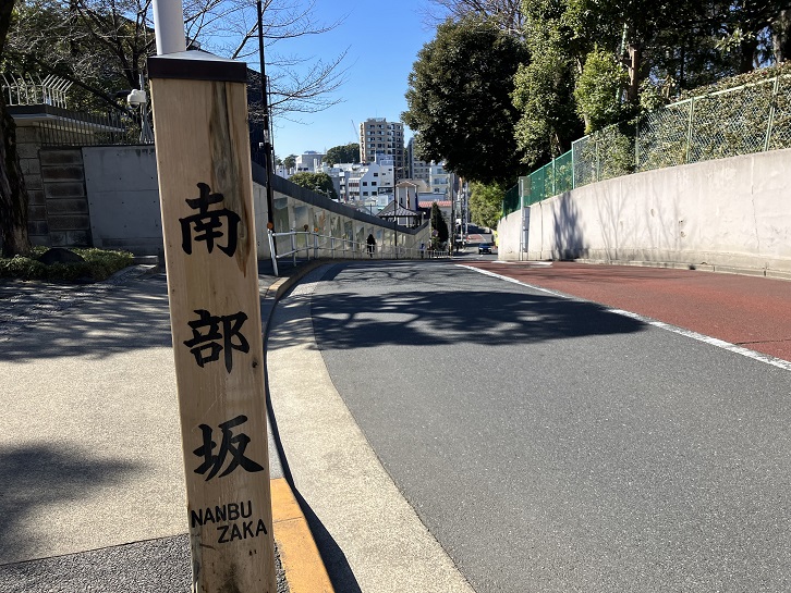 なんぶざか 有栖川宮記念公園の場所が赤坂からうつってきた盛岡城主南部家の屋敷であったために名づけられた。(忠臣蔵の南部坂は赤坂)