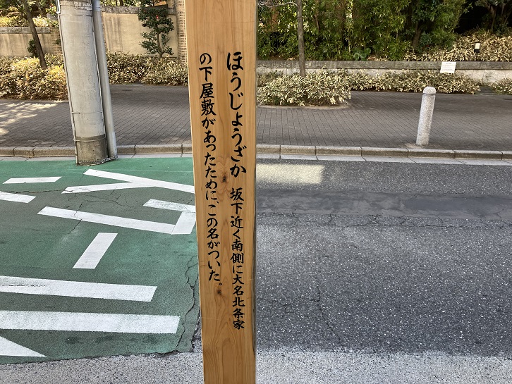 ほうじょうざか 坂下近く南側に大名北条家の下屋敷があったために、この名がついた。