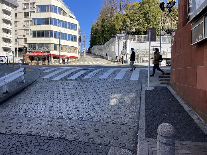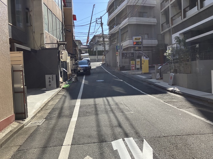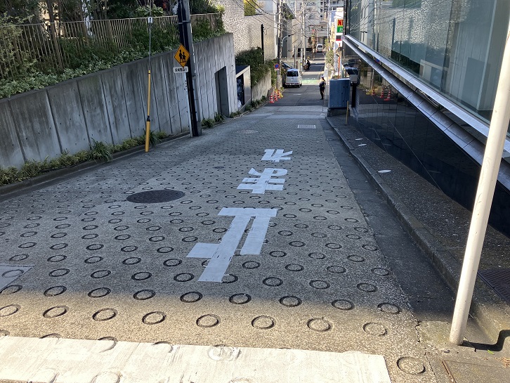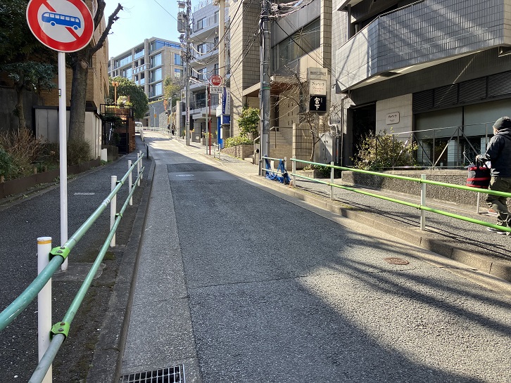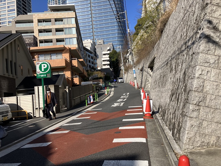 六本木通りの西麻布交差点から六本木交差点に向かって、次の信号付近まで上り坂になっています。