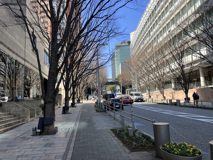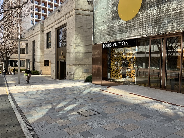 六本木ヒルズの敷地の中央を東西に通るメインストリートが上り坂になっています。