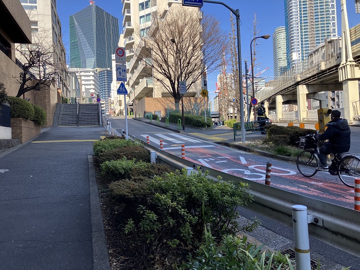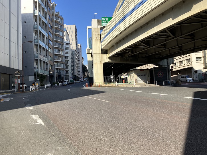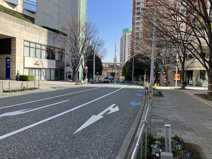 桜田通りの倉交差点から赤羽橋付近まで長い坂が下っています。