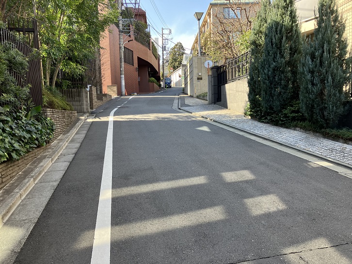 中国大使館の前からテレビ朝日通りを挟んで西に坂が下っています。
