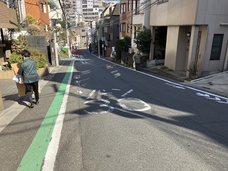 さくら坂公園の先から六本木高校の南西脇まで坂が下っています。