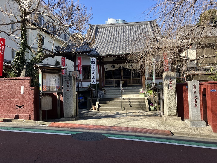 大黒坂は長さが約150mほどのやや急な坂です。別名を「大国坂」といいます。坂名の由来は、坂の中ほどに大黒天を祀る大法寺があることに因んでいます。