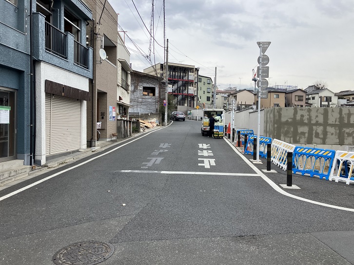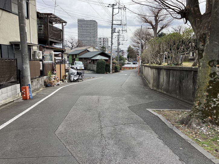 歩道橋を渡った先から坂が上がっています。
