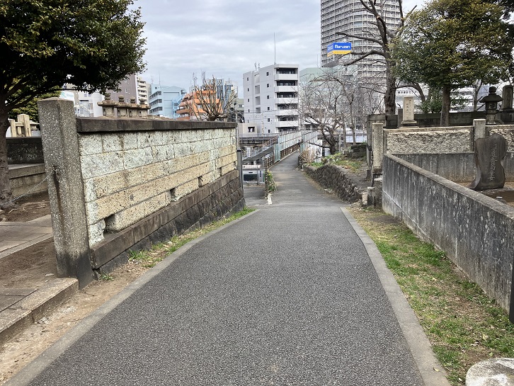 日暮里駅前の通りに出て右折した先に善性寺があります。善性寺は長享元年(1487年)に日嘉によって開山されました。その後廃寺状態になりましたが、天和二年(1682年)に甲府藩藩主の徳川綱重の側室お保良の方の老女日安尼(俗名:お虎)によって中興されました。お保良の方は綱重との間に男子を設け、この男子が第六代将軍徳川家宣です。お保良の方が没すると、遺言により善性寺に葬られました。また、家宣の弟の松平清武が善性寺に隠棲し、家宣が度々訪れていたことから「将軍家ゆかりの寺」となりました。山門前の石畳は旧音無川に架かっていた「将軍橋」遺構が使われています。墓地には、第55代内閣総理大臣の石橋湛山や、現在も破られていない69連勝の大相撲記録を樹立した第三十五代横綱の双葉山定次のお墓があります。