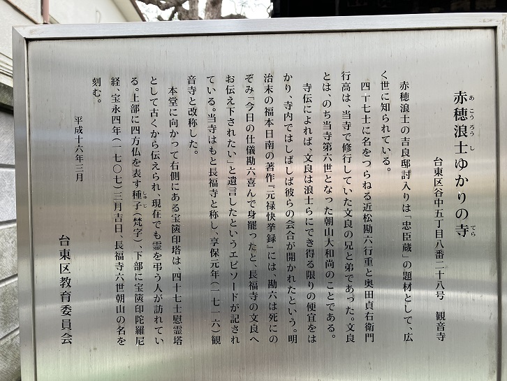 観音寺は赤穂浪士ゆかりの寺として知られています。