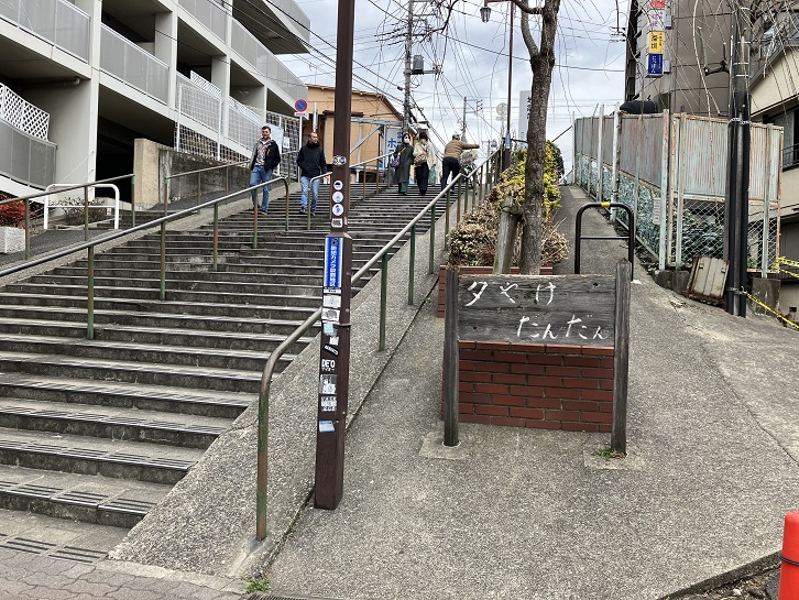 「夕やけだんだん」の階段上の左手に坂が下っています。