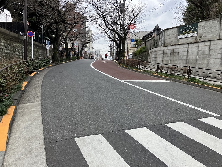 鶯谷の迷路のような路地を抜け、言問通りが通る寛永寺橋で再びJRの線路を渡ります。寛永寺橋を渡った先から上野桜木二丁目交差点付近まで坂が上がっています。